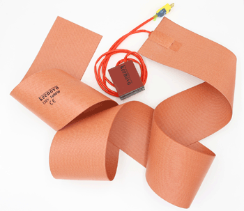 Silicone Heaters: wire wound or etched foil vulcanized between two layers of fiberglass reinforced silicone rubber.